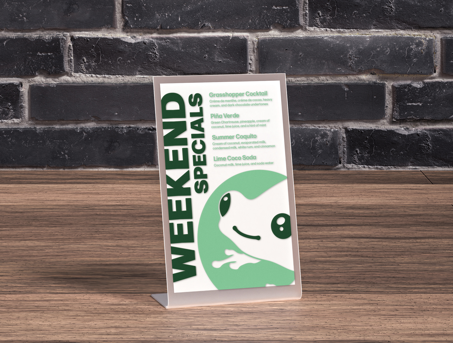 This project involved creating a visual identity for a fictitious tavern that values community and festivities while connecting with my Puerto Rican culture, as represented by the brand’s mascot, the coqui frog. While each logo variation represents these values, each of them still gives off a different vibe, from playful and silly to classic and serious.