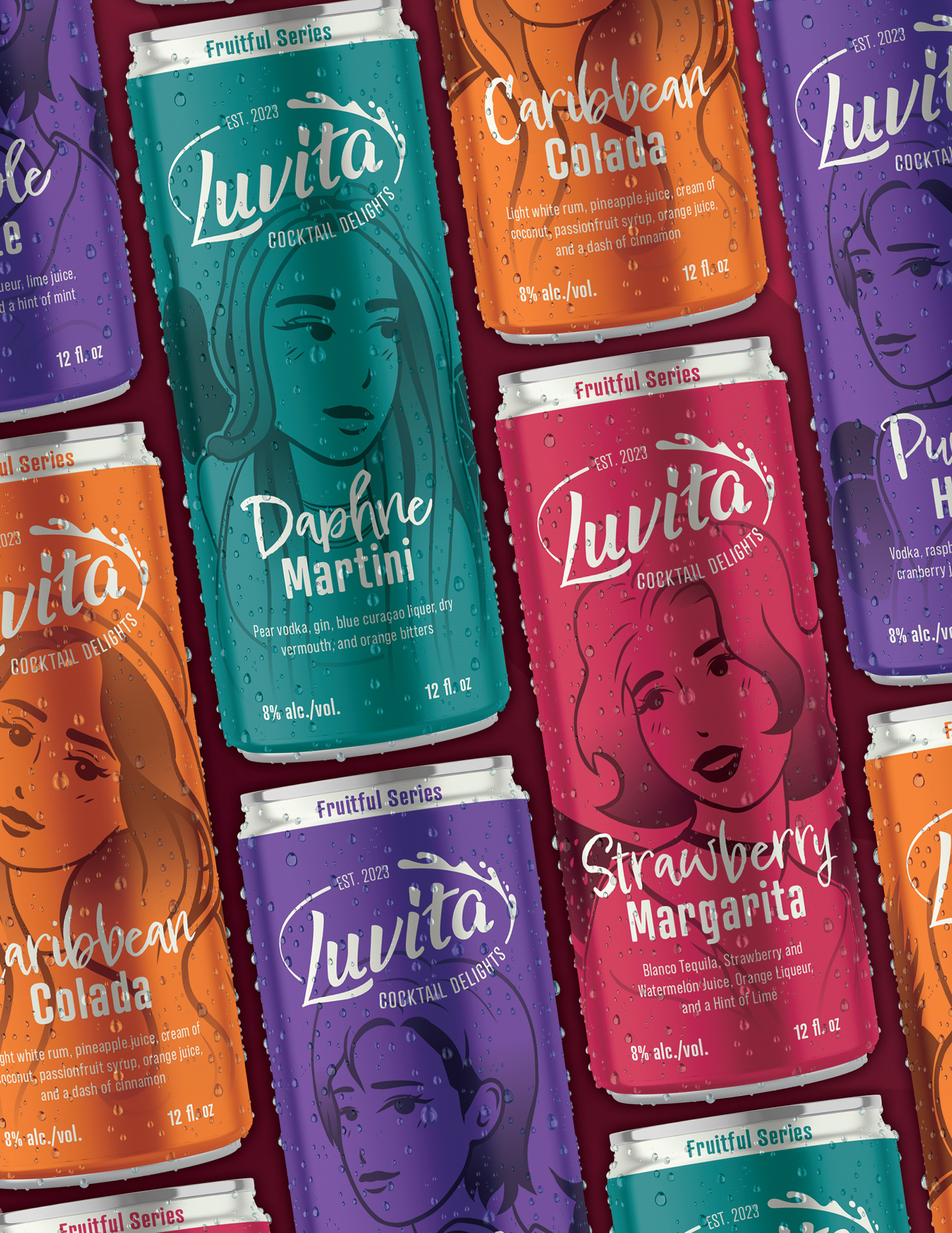 This project involved creating package designs and marketing campaign collateral targeted towards women who love celebrating life and achievements. The campaign promotes the new “fruitful series” through the brand’s celebratory values and by highlighting the product as a guilt-free yet flavorful alternative to other brands’ canned cocktails.